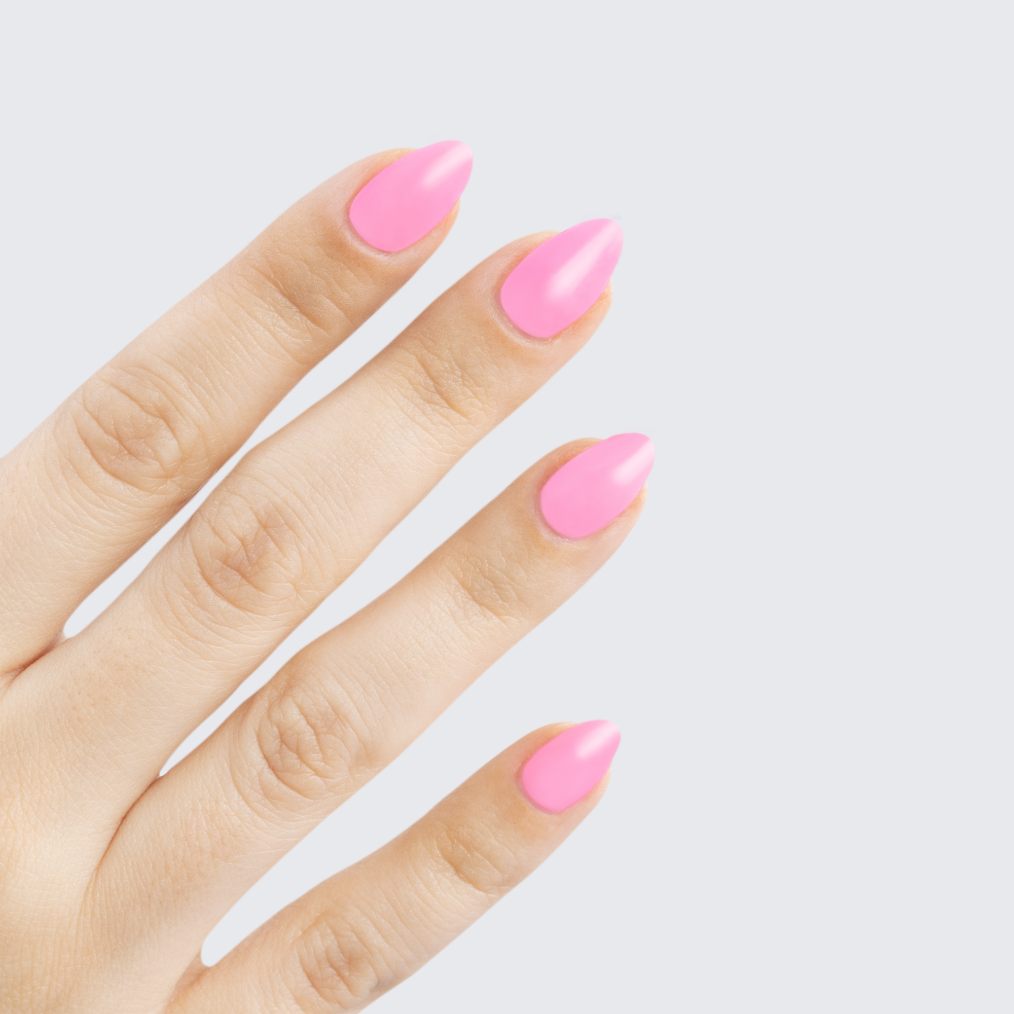 Pastel bubble gum pink. Neon. Bright. Light. Opaque. Cool undertone.